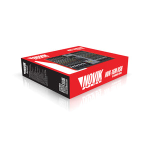 NVK 16M USB con una construcción robusta y múltiples entradas de micrófono y de línea, ecualizador de 3 bandas, envíos AUX/FX e insertos en todos los canales, es la mejor opción para usar en sistemas fijos y móviles de sonido en vivo o grabación.
